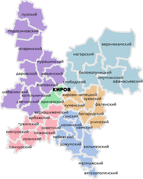 Выберите на карте район для перехода на страницу филиала: